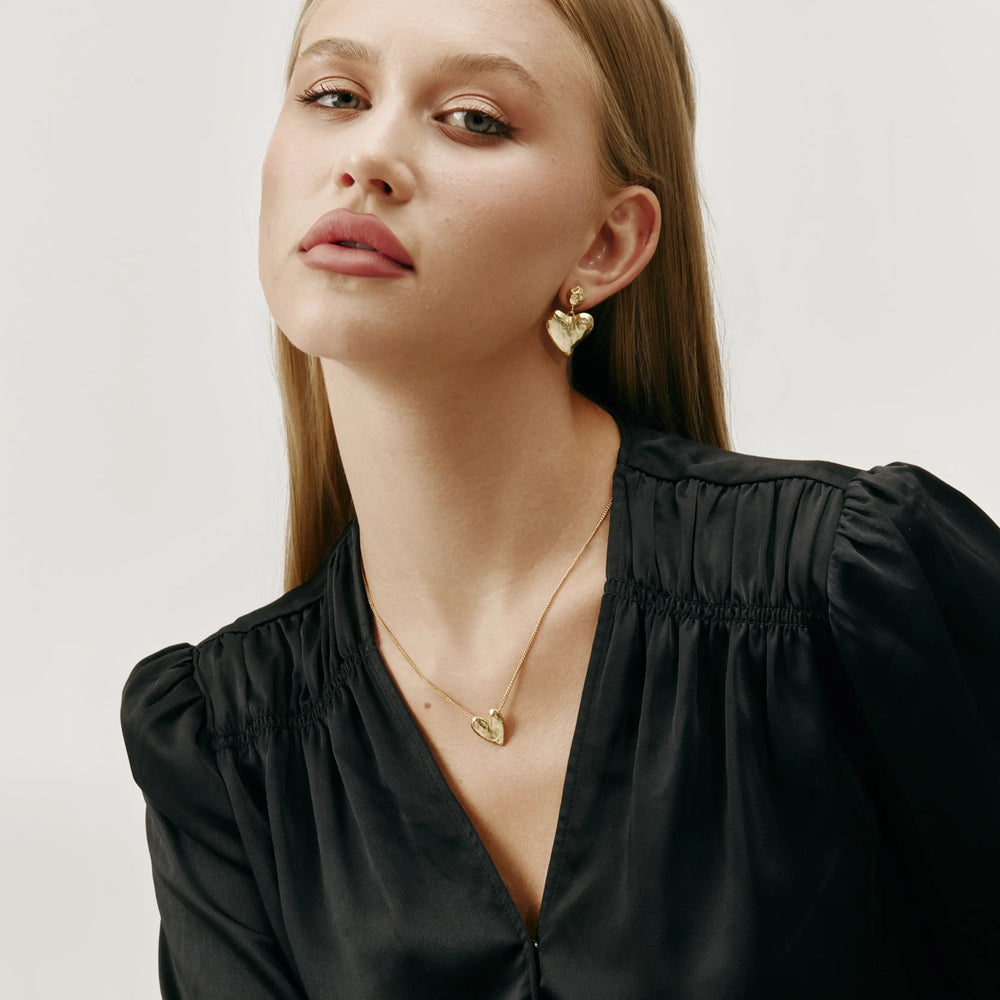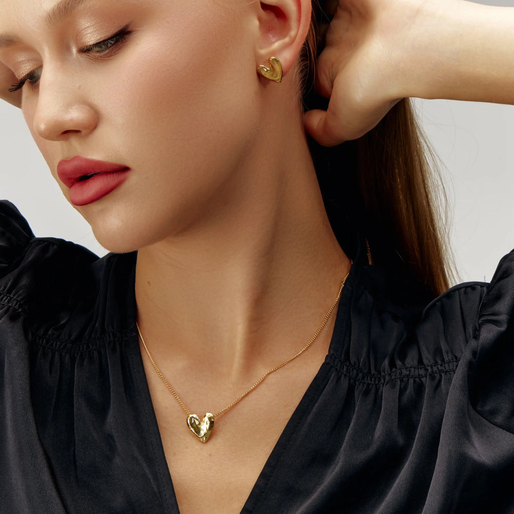 The Amara Duo Set brings together two statement pieces that embody the bold yet romantic spirit of HORMTN. The necklace features a polished gold heart pendant that rests delicately at the collarbone, while the statement earrings showcase oversized hearts with artisanal texture and shine. Together, they create a look that is both modern and timeless—designed for women who embrace love, strength, and individuality in every detail.