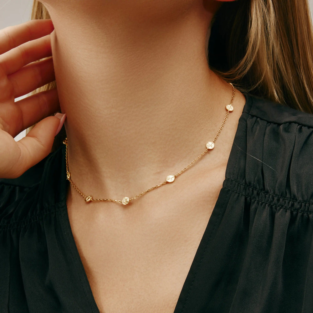 Aure & Lina Set brings together timeless charm and modern minimalism. The Aure Coin Necklace, with its delicate golden discs, adds a touch of vintage allure, while the Lina Chain Choker embodies effortless elegance. Worn together, they create a layered look that is versatile, refined, and endlessly chic—perfect for elevating everyday wear or adding subtle sophistication to evening ensembles.