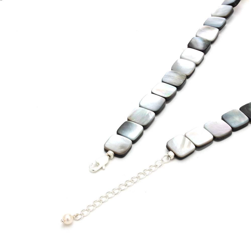 The Aurelia Necklace embodies the refined elegance of the sea. Each square shell bead reflects a soft iridescence, capturing both structure and serenity. Designed as a modern statement piece, it offers versatility for layering or solo styling, carrying the essence of minimal sophistication in every detail.