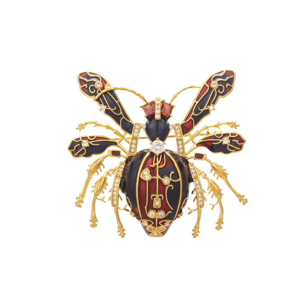 Born from legends of royalty, the Imperial Bee Brooch honors devotion, resilience, and quiet power. Deep black and ruby enamel glows with regal intensity, while gilded veins and crystals trace every line with artistry. Wear it as a crest of your own — a reminder that true strength is steady, purposeful, and elegantly fierce.