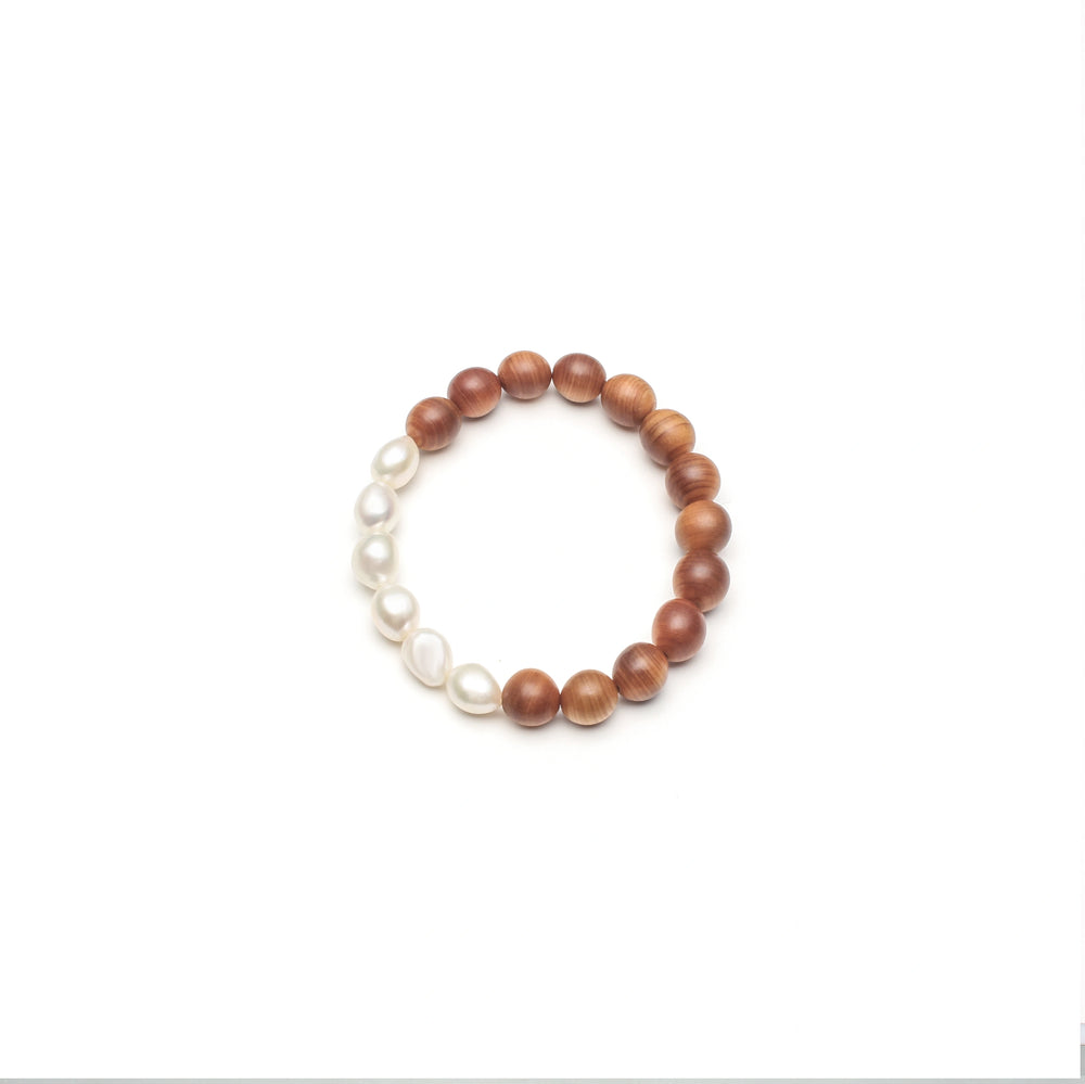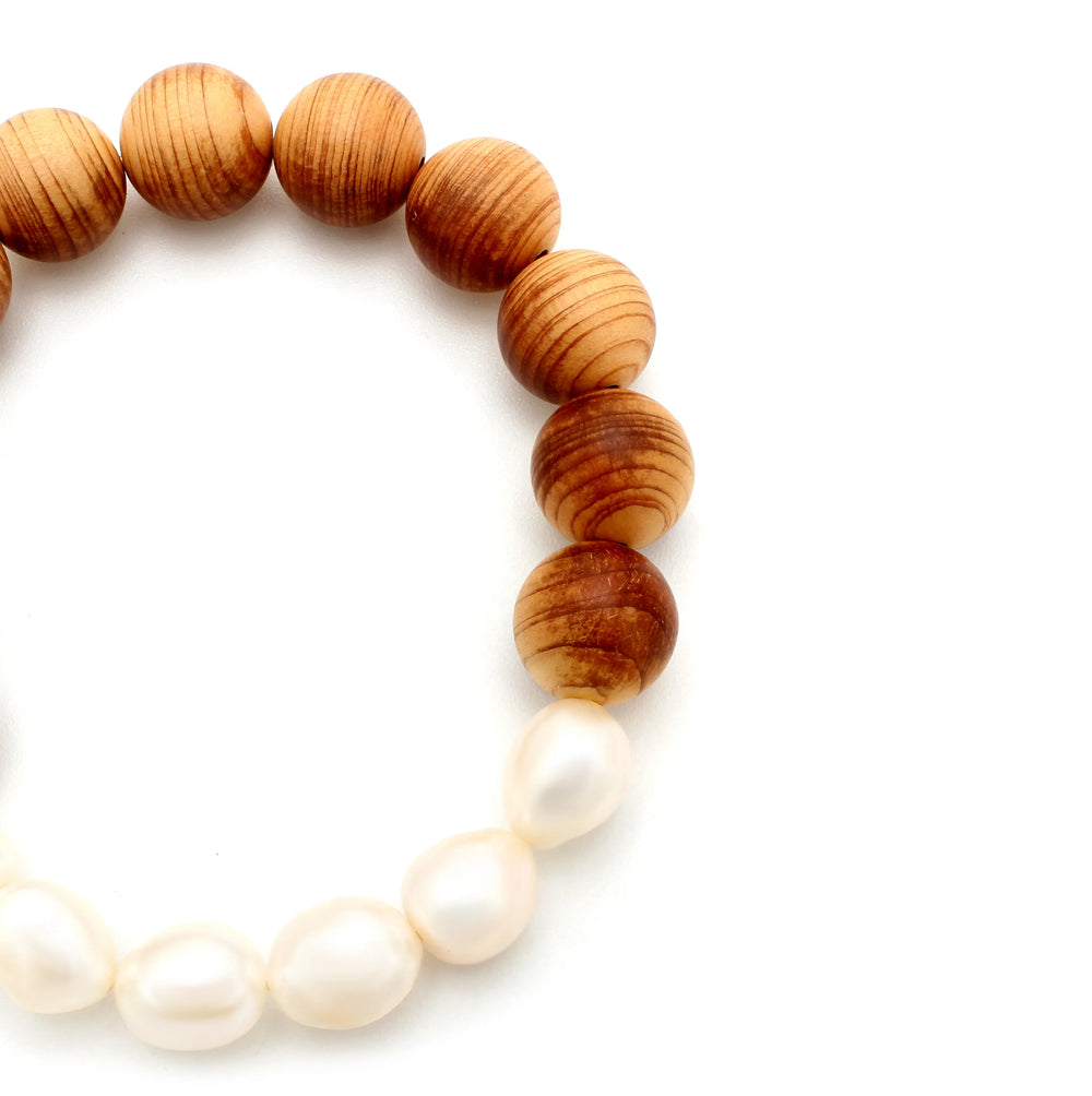 The Sylva Bracelet embodies the essence of nature’s duality. With the grounding richness of polished wood beads balanced against the serene glow of freshwater pearls, it offers a timeless blend of rustic charm and refined beauty. Designed as a symbol of balance and everyday strength, it’s a versatile piece that effortlessly elevates your look.